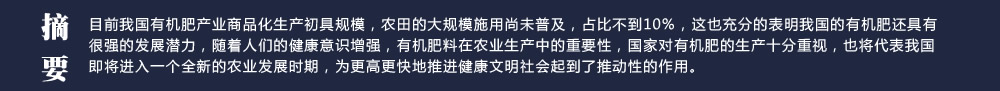 目前我國有機肥產(chǎn)業(yè)商品化生產(chǎn)初具規(guī)模,農(nóng)田的大規(guī)模施用尚未普及,占比不到10%,這也充分的表明我國的有機肥還具有很強的發(fā)展?jié)摿,隨著人們的健康意識增強,有機肥料在農(nóng)業(yè)生產(chǎn)中的重要性,國家對有機肥的生產(chǎn)十分重視,也將代表我國即將進入一個全新的農(nóng)業(yè)發(fā)展時期,為更高更快地推進健康文明社會起到了推動性的作用。